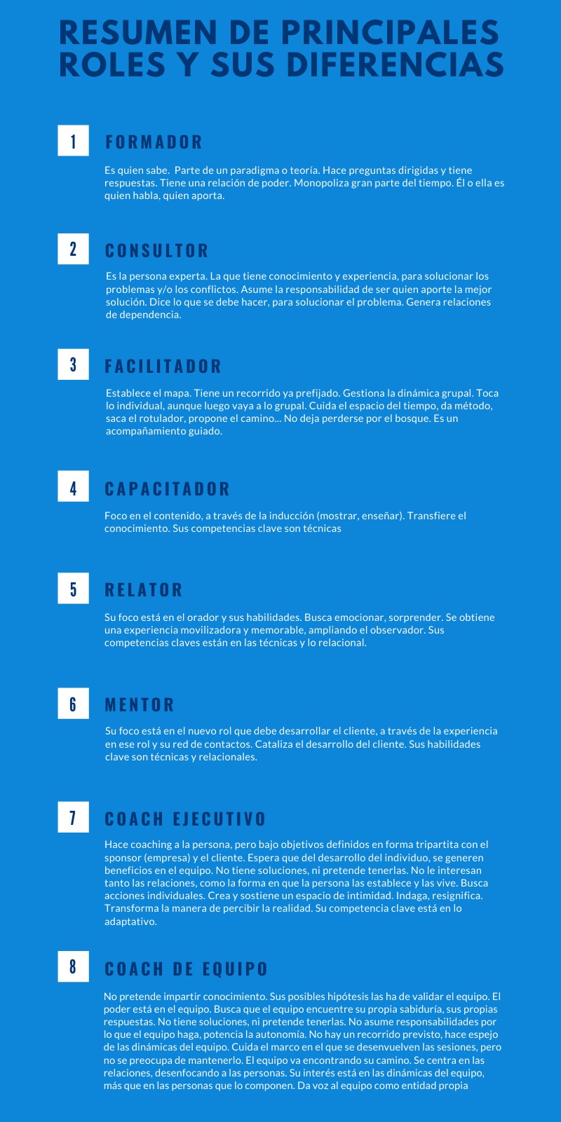 Esto significa que, aunque haya que diferenciar entre distintos roles, el coach “puro” es difícil, frecuentemente se mezclan roles. De hecho, es bastante habitual que iniciemos una intervención de consultoría y que, durante el proceso de trabajo, descubramos, junto con el equipo, que hay otras circunstancias o dificultades que entorpecen la tarea, y que requieren otro tipo de intervención.